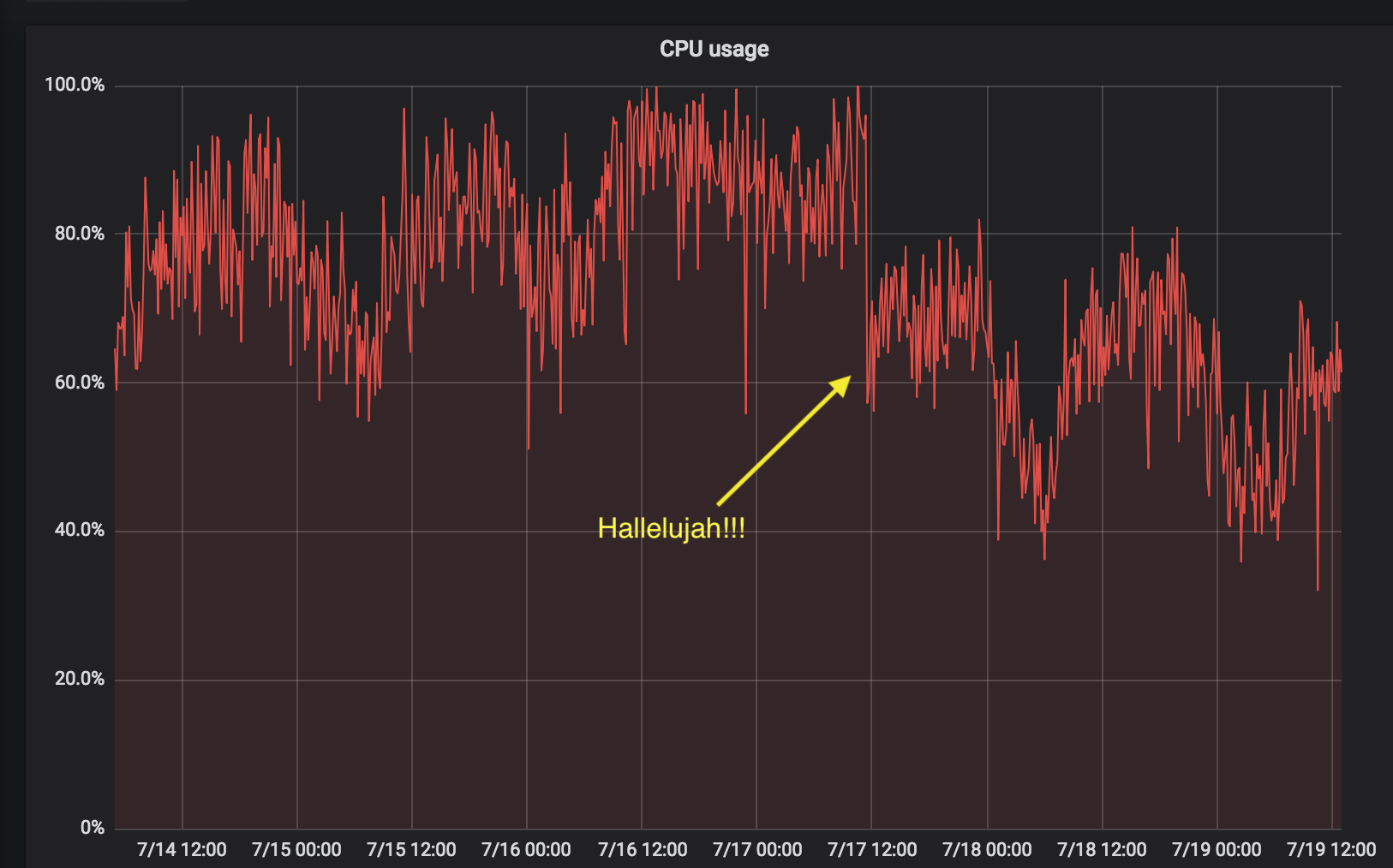 We've just released Synapse 0.33.0! This is a major performance upgrade which speeds up /sync (i.e. receiving messages) by a factor of almost 2x! This has already made a massive difference to the CPU usage and snappiness of the matrix.itmanbu.com homeserver since we rolled it out a few days ago - you can see the drop in sync worker CPU just before midday on July 17th; previously we were regularly hitting the CPU ceiling (at which point everything grinds to a halt) - now we're back down hovering between 40% and 60% CPU (at the current load). This is actually fixing a bug which crept in around Synapse 0.31, so please upgrade - especially if Synapse has been feeling slower than usual recently, and especially if you are still on Synapse 0.31.
