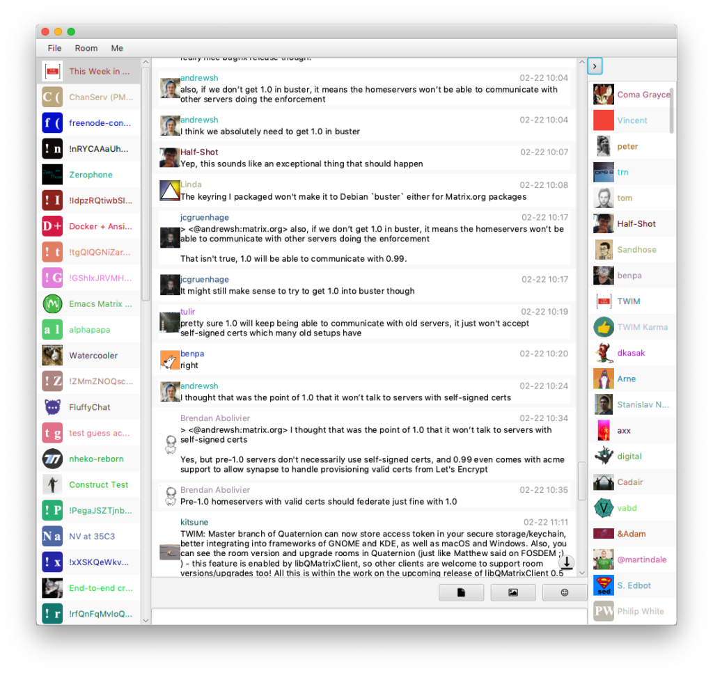 Also, you can see the room version and upgrade rooms in Quaternion (just like Matthew said on FOSDEM ;) ) - this feature is enabled by libQMatrixClient, so other clients are welcome to support room versions/upgrades too!