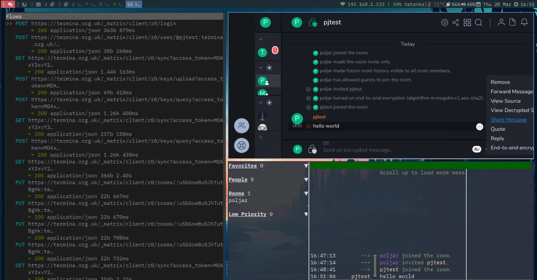 We have much improved sytest support for Synapse worker mode, Hawkowl landed a brand new super fast super shiny user directory implementation, Brendan fixed a bunch of niggles in the federation tester and we finally got to the bottom of our sync caching bug that obscured accepting invites (thanks richvdh for sticking with it). Erik solved our presence spamming bug and anoa fixed some LDAP auth bugs and submitted a PR for certificate checking - one of our final blockers for Synapse 1.0. For all the latest checkout out our latest release candidate 0.99.3rc1.