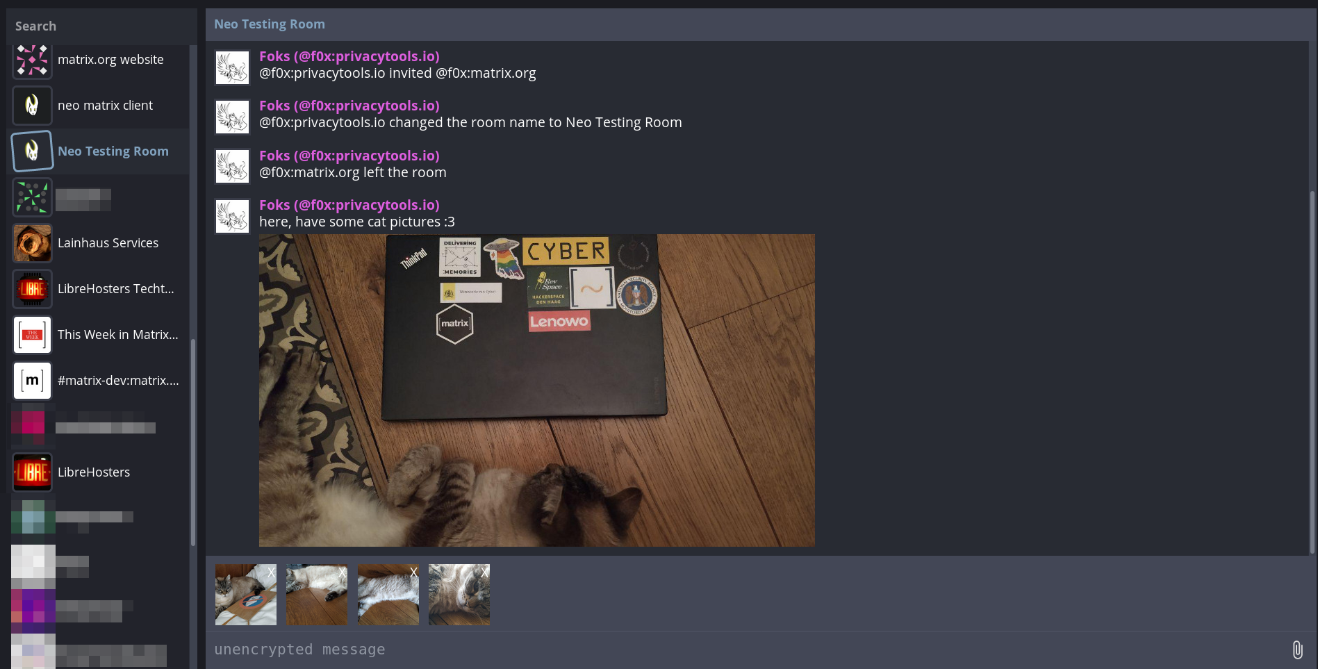 Due to the loss of lain.haus, I lost admin access in the Neo room, so keep your eyes out for a new one when my infra is back.