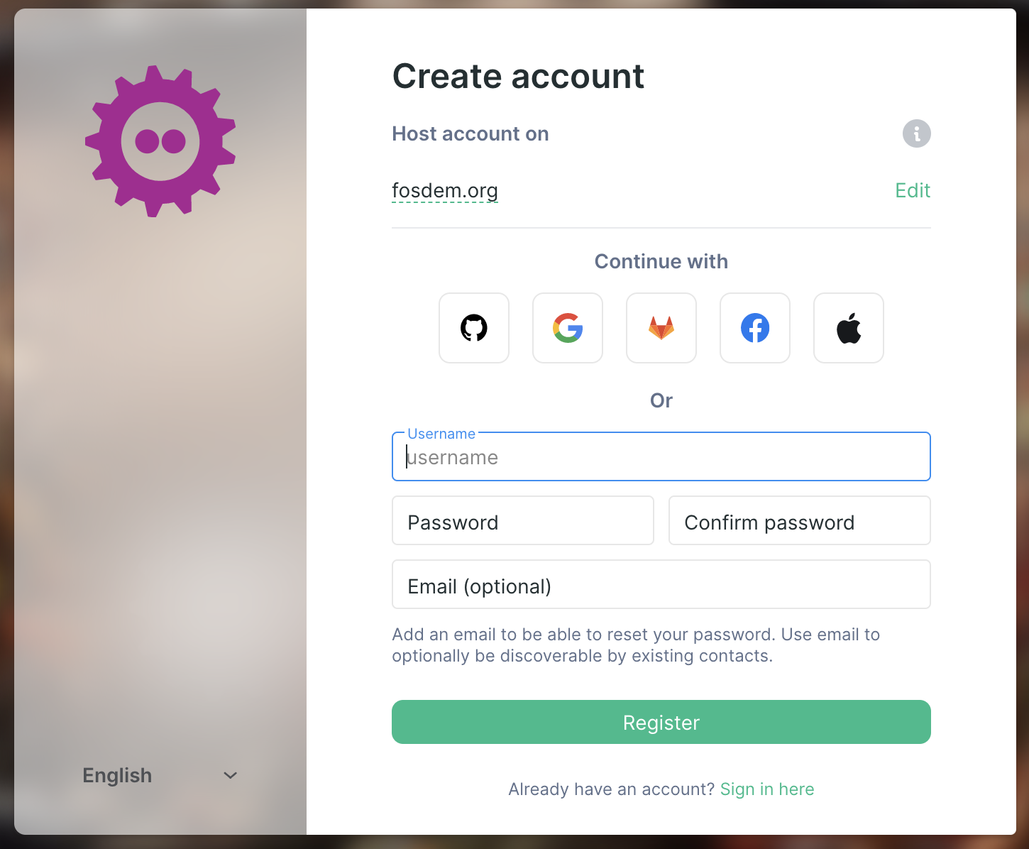 There was also an explosion of changes to Element itself to try to make things go as smoothly as possible. Probably the most important one was implementing Social Login - giving single-click registration for attendees who were happy to piggyback on existing identity providers (GitHub, GitLab, Google, Apple and Facebook) rather then signing up natively in Matrix:
