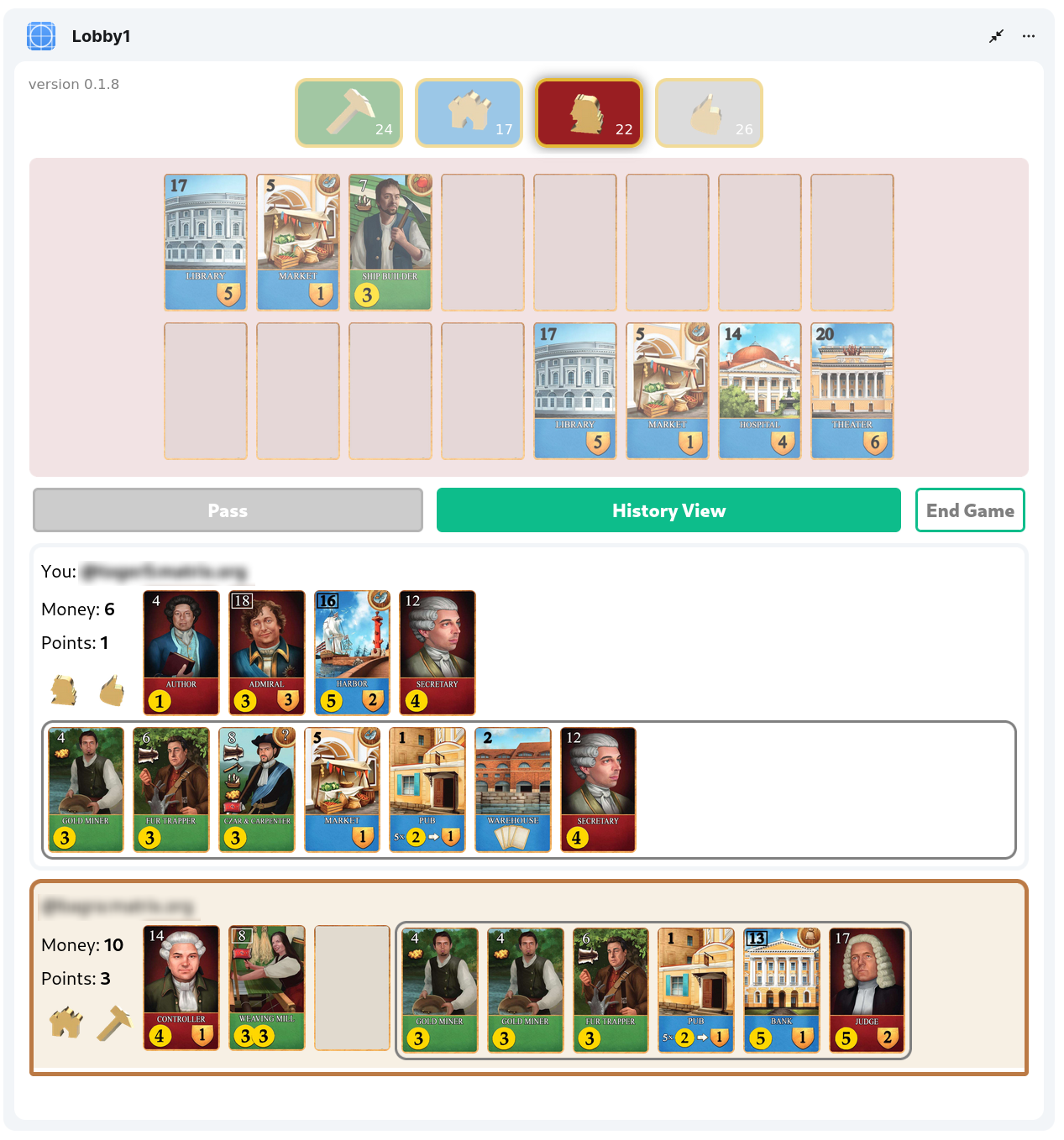 Last but not least the game Saint Petersburg is really fun. It takes a couple of minutes to grasp the rules but it is one of those games where there are so many things that can be considered with simple rules that it becomes more and more exciting with each round. So I really invite you to check out the rules and give it a try. Its best to start in the Git Repo or join the this room: #st-petersburg-auth:matrix.itmanbu.com