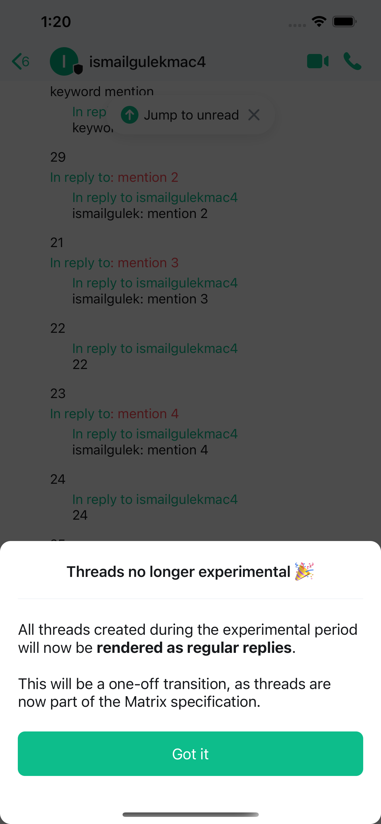 Threads are levelling up and becoming driven by MSC3440, increasing their reliability and cross device consistency. If you're already using threads we'll automatically migrate them for you in the next release 1.4.6