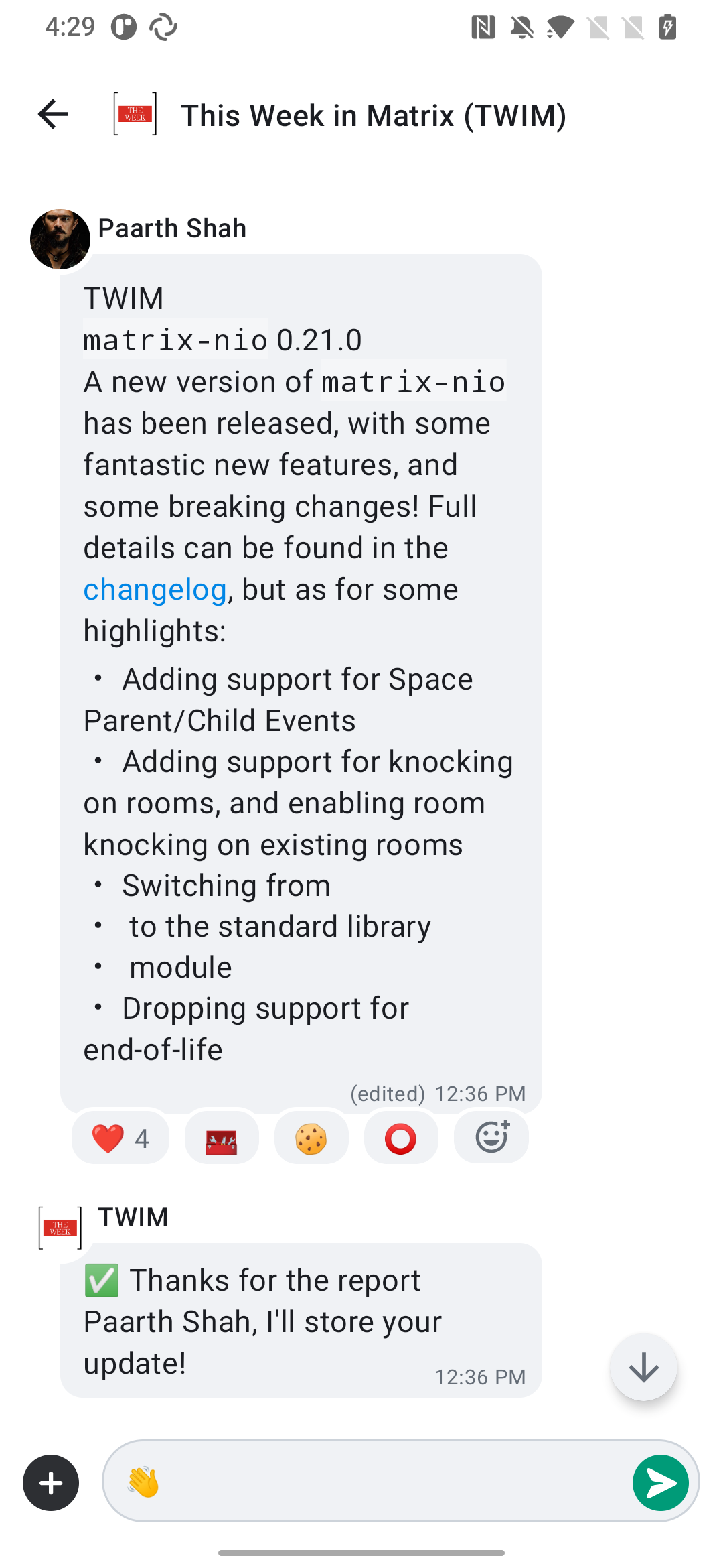 matrix-nio0.21.0 A new version ofmatrix-niohas been released, with some fantastic new features, and some breaking changes! Full details can be found in the changelog, but as for some highlights: