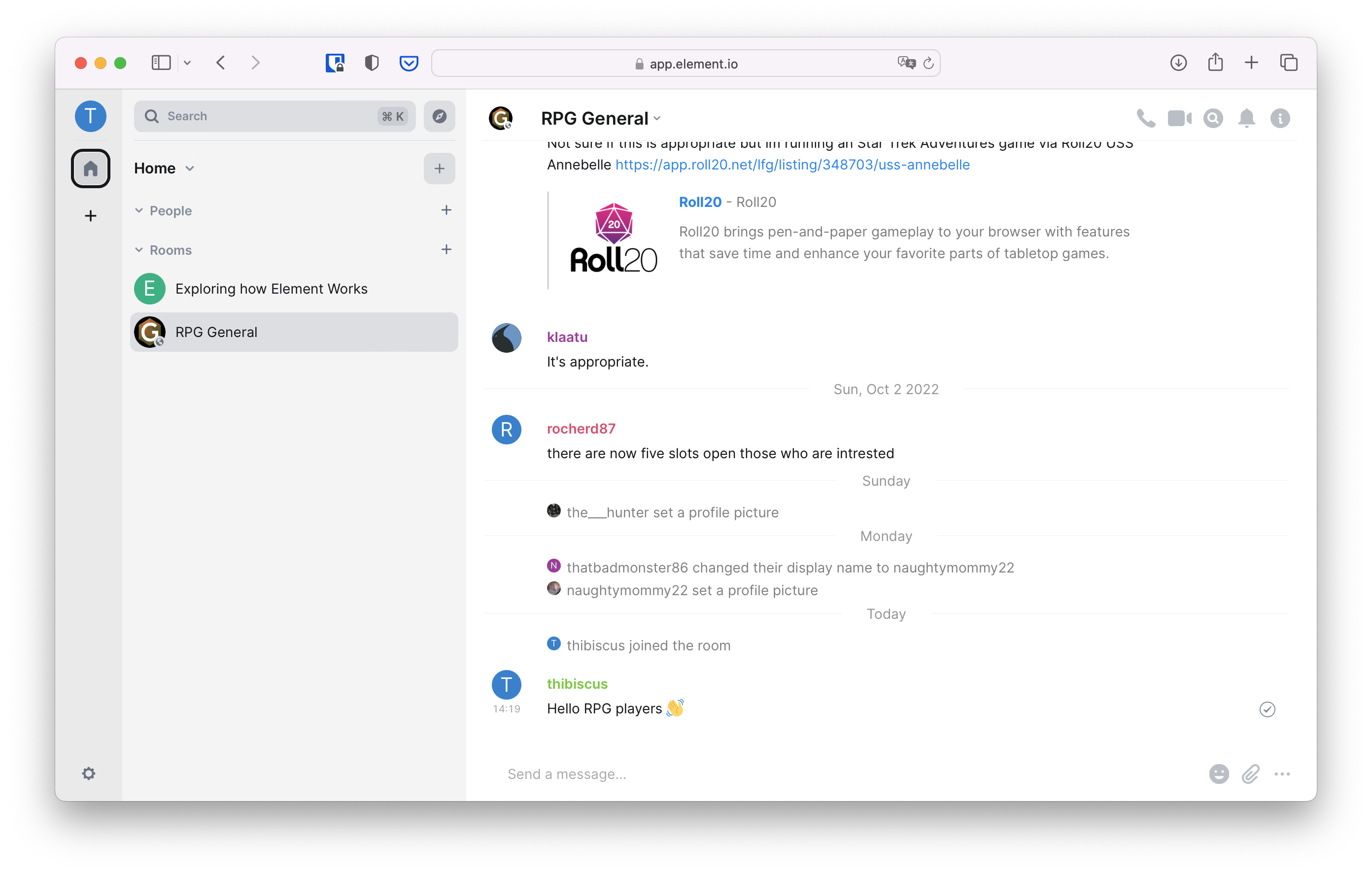 Since this documentation started with Element, let's carry on with it. You will be able to seamlessly change to another client when you're more used to Matrix.